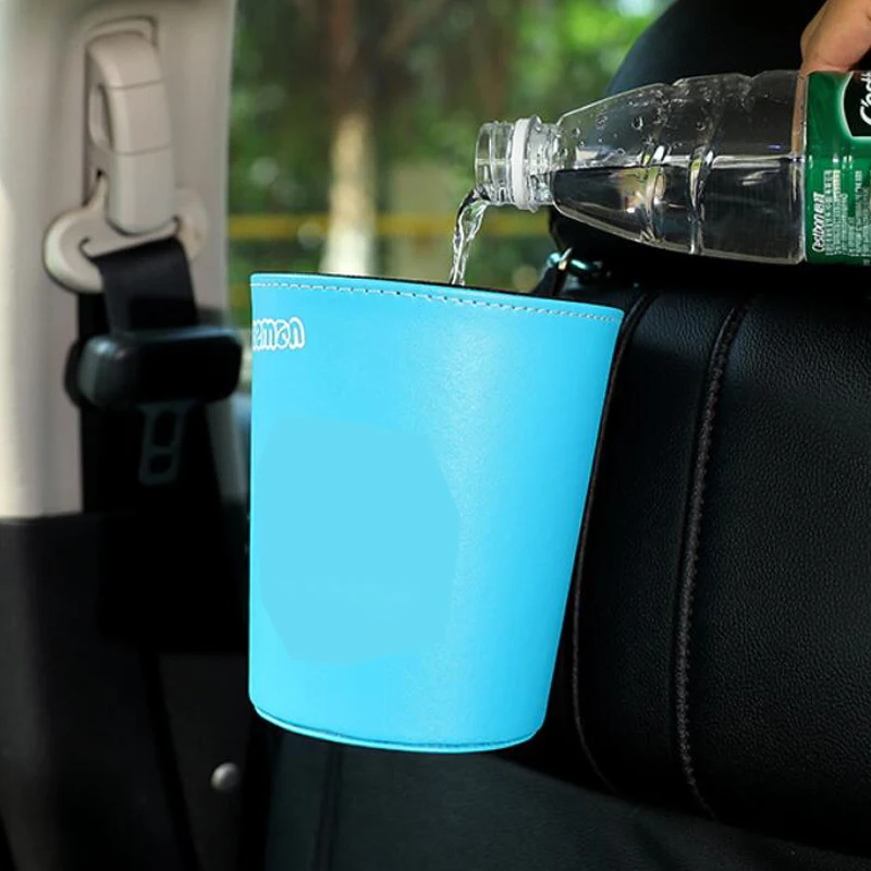 New Arrival Leather Car Trash Bin Auto Organizer Storage Box Car Trash Can Rubbish Garbage Holder Automobile St